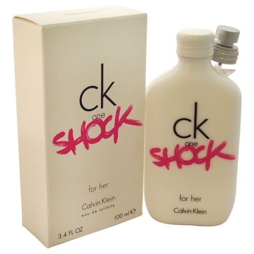 Picante, aromático e profundamente oriental, o CK One Shock Eau De Toilette Spray para mulheres foi introduzido por Calvin Klein em 1994. As misturas interessantes de floral e almíscar são carregadas com um apelo sensual que é verdadeiramente irresistível. As notas principais apresentam cheiros de Flor de Maracujá, Peônia Rosa e Papoula Vermelha. As notas médias de Blackberry, Chocolate Mexicano, Narciso e Jasmine difundem uma fragrância suave de cetim. As notas finais contêm notas de almíscar, Patchouli, Âmbar e Baunilha para um medley que é misterioso, bem como divertido.