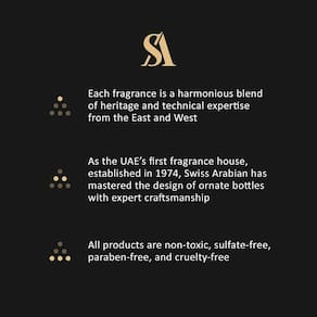 - A MISTURA PERFEITA DE CULTURAS E PERFUMES. Com um legado enraizado em uma mistura de artesanato ocidental e oriental, a Swiss Arabian é uma marca fundada na dualidade que celebra orgulhosamente o espaço em que dois mundos aparentemente opostos se unem.