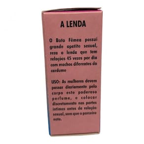 Perfume do Boto Fêmea 10 ml Perfume do Boto Fêmea - Os homens vão te achar muito mais atraente sexualmente. A lenda: O boto fêmea possui grande apetite sexual, reza a lenda que tem relações 45 vezes por dia com machos diferentes do cardume. Uso: As mulheres devem passar diariamente pelo corpo este poderoso perfume e colocar discretamente nas partes íntimas antes da relação sexual sem que o parceiro note. Marca: Não Informado