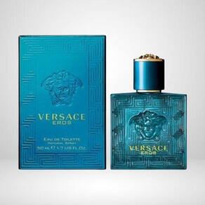 Versace Eros é um perfume Aromático Amadeirado intenso e irresistível. Ele desperta o desejo com notas olfativas bastante masculinas, que remete a um homem viril que luta pelas suas ideias e objetivos. O frasco faz referencias a signos da Versace como a medusa e a borda geométrica, sendo que a cor turquesa simboliza o Mediterrâneo.
