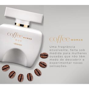 Perfume Feminino Desodorante Colônia 100ML Coffee Woman Duo Coffeewoman Duo Desodorante Colônia 100mlAs notas cremosas do Leite harmonizam com o contraste e amargor do Café. Em CoffeeWoman Duo Desodorante Colônia, além da mistura entre Café com Leite, a fragrância combina frutas negras e flores provando que os opostos. O resultado Uma mistura tanto para quem usa, quanto para quem sente. Conteúdo:- Perfume Desodorante Colônia Feminino 100ML CoffeeWoman Duo Imagem meramente ilustrativa. Enquanto durarem os estoques, você poderá receber o produto com a embalagem antiga.