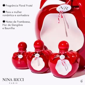 O Perfume Nina Extra Rouge de Nina Ricci é envolvido em notas apetitosas. Suas notas de framboesa, cassis e botões de rosa giram ao redor de um acorde de pralinê poderoso e ousado. Um eau de parfum de personalidade forte, em um frasco em forma de maçã totalmente revestido de vermelho mate aveludado