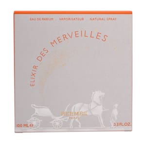 Uma deliciosa e sensual destilação de maravilhas. Um mingau macio de laranja cristalizado envolto em chocolate com notas amadeiradas de âmbar, resinas quentes e bálsamos enfatizando sua generosidade e sensualidade. Desde 2004, a Eau des Merveilles é a chave que abre as portas para as maravilhas da Hermès. Da inocência à fantasia, dos sonhos de infância à feminilidade, é um mundo onde o extraordinário é trazido à luz. Ano após ano, somos transportados por um ar de encantamento poético. Capturadas em seus frascos redondos que lembram uma lupa, as fragrâncias têm o poder mágico de ver o mundo de novos e maravilhosos ângulos. É a chave para as maravilhas, a origem das estrelas em plena luz do dia. - Eau de perfume em spray Elixir Des Merveilles da Hermes para mulheres de 3,3 onças