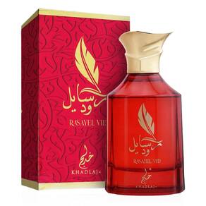 - Eau de Parfum Khadlaj Rasayel Vid para todos - Notas principais: bergamota, laranja. Notas médias: Berry, Gardenia. Notas de base: âmbar, sândalo