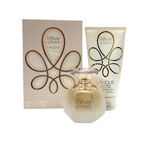 Características principais -------------------- - Essência encantadora: Lalique Rêve d'Infini é uma fragrância floral luxuosa que cativa os sentidos com suas notas delicadas e etéreas, perfeita para qualquer ocasião. - Conjunto de presentes versátil: este conjunto requintado inclui um eau de parfum de 50 ml e uma loção corporal perfumada de 150 ml, tornando-o um presente ideal para seus entes queridos ou um deleite fabuloso para você. - Aroma duradouro: experimente o aroma encantador ao longo do dia com sua fragrância duradoura, projetada para deixar uma impressão memorável. - Design elegante de frasco: a assinatura Lalique o frasco combina sofisticação e arte, tornando-o uma bela adição à sua coleção de fragrâncias. Ficha técnica -------------------- - Marca: Lalique - Tipo de fragrância: Eau de Parfum - Tamanho do frasco: 50 ml - Tamanho da loção corporal: 150 ml Lalique Rêve d'Infini personifica a essência da feminilidade e elegância, mesclando notas florais, frutadas e almiscaradas para criar uma mistura harmoniosa. As notas de abertura oferecem uma explosão brilhante de frescor, transformando-se suavemente em um sofisticado coração de flores desabrochando. Conforme o perfume se desenrola, tons almiscarados sutis emergem, deixando um traço duradouro e reconfortante que realça seu fascínio natural. Ideal para aplicar em camadas com a loção corporal perfumada que a acompanha, esta fragrância requintada envolve a pele com luxo, proporcionando hidratação e suavidade. Desfrute desta fragrância encantadora que captura sonhos e possibilidades infinitas, perfeita para uso diário ou ocasiões especiais. Abrace o fascínio de Lalique Rêve d'Infini e deixe sua fragrância contar sua história.
