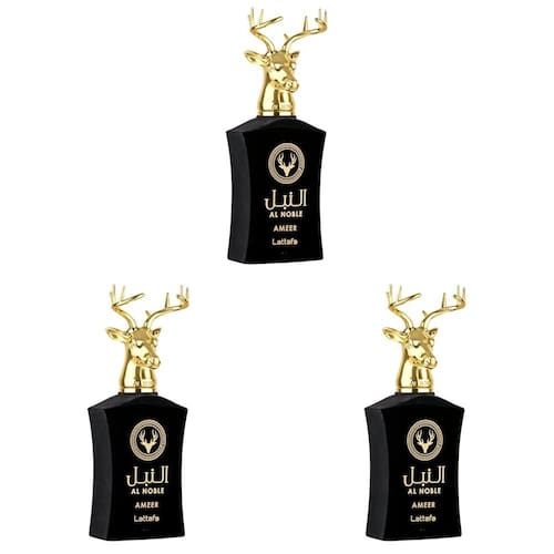 Lattafa Al Noble Ameer Eau De Parfum Spray Unissex, 100 ml (pacote com 3) - As informações abaixo são apenas por pacote - As notas principais são maçã, alecrim e pimenta rosa - Notas intermediárias são cravos e notas florais - As notas de base são Oud, Patchouli, Cipreste, Labdanum e Vetiver - Notas principais: maçãs, pimenta rosa, alecrim