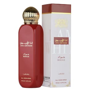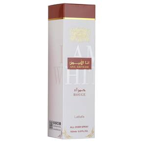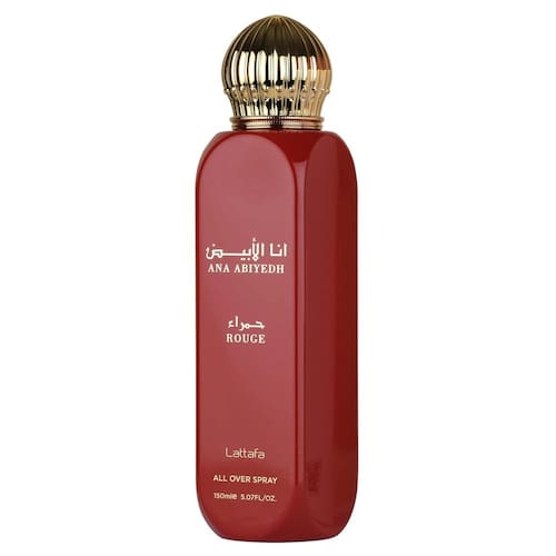 Lattafa Ana Abiyedh Rouge — Fragrância frutada, gourmand, floral, almiscarada — All Over Spray, fragrância de longa duração para mulheres, 5,07 onças/150 ml