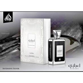 Spray de água de perfume Lattafa Ejaazi Intensive Silver para unissex, 3,4 onças - Ejaazi Intensive Silver da Lattafa Perfumes é uma fragrância aromática frutada - Esta é uma nova fragrância para mulheres e homens - As notas principais são tangerina e toranja - As notas médias são notas de cedro e mar - As notas de base são âmbar e musgo