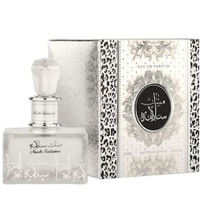 Lattafa Máscara Salama para Eau de Parfum Spray unissex, 100 ml - Salama de almíscar da Lattafa é uma fragrância aquática aromática para mulheres e homens - Notas principais: Frutas, almíscar branco - Notas médias: âmbar, almíscar branco - Notas de base: madeira, couro, oud, Moscou - Fragrância de longa duração