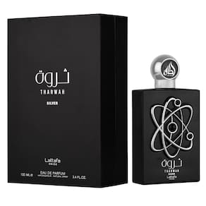 Lattafa Perfumes Tharwah Silver para spray de eau de parfum unissex, 3,4 onças - Tharwah Silver da Lattafa é uma fragrância fresca para homens e mulheres - Notas principais: menta, bergamota - Notas médias: sálvia, lavanda - Notas de base: cedro, almíscar, vetiver - Adequado para uso diário
