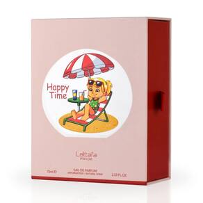 - Happy Time EDP Spray 75 ml da Lattafa Pride Este perfume abre com o frescor brilhante e picante da tangerina, criando uma introdução viva e revigorante.