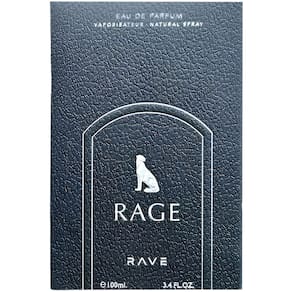Lattafa Rave Rage — Frutado, picante, amadeirado, doce — Fragrância de longa duração em spray Eau de Parfum para unissex, 3,4 onças/100 ml — Fragrância