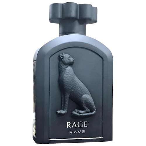 Lattafa Rave Rage — Frutado, picante, amadeirado, doce — Fragrância de longa duração em spray Eau de Parfum para unissex, 3,4 onças/100 ml — Fragrância