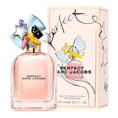 O frasco de Perfect apresenta um vidro elegante com bordas curvas, que acompanha uma tampa coberta por uma coleção de amuletos inusitados, como um sapato de salto alto, um dominó da sorte, um gato, um balão em forma de estrela brilhante, para citar alguns. De uma maneira criativa e divertida, é um contraste entre elementos sérios, ecléticos e femininos, uma assinatura do trabalho de Marc Jacobs.