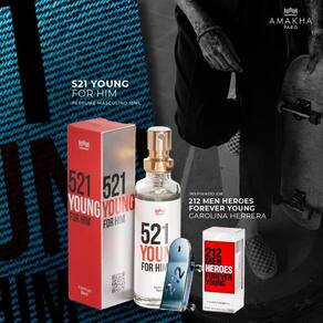 Descrição do produto O perfume masculino 521 young for him, da amakha paris, é a novidade que faltava para inspirar a juventude dos dias atuais. Uma fragrância disruptiva, inspirada no espírito vibrante e na confiança destemida de nova york, combina o passado e o presente em perfumes modernos e refrescantes para quem mantém a juventude independente do tempo. As notas joviais têm como base elementos sensuais para fragrâncias intrigantemente ousadas, criadas para valorizar a criatividade vivaz de quem leva o espírito festivo aonde quer que vá.
