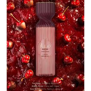 Lattafa Mayar Cherry Intense Perfume Mist 250 ml – Spray corporal Sweet Gourmand com notas de morango, bergamota, cereja, cacau, baunilha, patchouli e âmbar