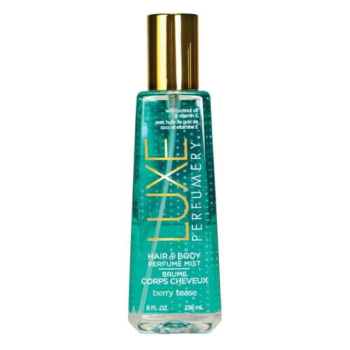 Luxe Perfumery Hair and Body Perfume Mist, Berry Tease, 236 ml (pacote com 1) - Berry Tease Hair & Body Perfume Mist da Luxe Perfumery, 8,0 fl. oz. - Traços de frutas doces, jasmim e baunilha se combinam em um floral gourmand irresistível - Infundido com óleo de coco, óleo de semente de brócolis e vitamina E, deixa o cabelo e o corpo luxuosamente perfumados sem ressecar. - Livre de parabenos, ftalatos e propilenoglicol