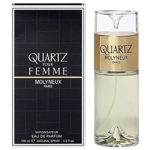 Quartz é um grande clássico da perfumaria, uma fragrância delicada e fresca para mulheres de todas as idades. Traz uma delicada combinação de frutas cítricas com a alegria das flores. Nota de cabeça: Limão, Tangerina, Bergamota, Toronja Zest. Nota de coração: Íris, Jasmim, Lírio do Vale, Madressilva, Rosa. Nota de fundo: Vetivér, Sândalo, Patchoulí, Musgo do Tirol.