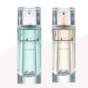 SOBRE: Rasasi Fattan Pour Femme é uma fragrância leve e frutada para mulheres. O perfume abre com lindas notas de topo de tangerina cítrica e bergamota. A pimenta rosa adiciona um pouco de tempero a essa camada, que então se dobra lindamente em um jardim de aromas florais. SOBRE: Com longevidade acima da média, Rasasi Fattan Pour Homme é uma fragrância amadeirada e terrosa para homens. Fattan em inglês urbano significa pessoa incrível que combina com a essência contida no simples líquido verde pálido. O frasco de vidro apresenta os símbolos árabes exclusivos da empresa em um spray fácil de usar. - SOBRE FATTAN WOMEN: Rasasi Fattan Pour Femme é uma fragrância leve e frutada para mulheres. O perfume abre com lindas notas de topo de tangerina cítrica e bergamota. A pimenta rosa adiciona um pouco de tempero a essa camada, que então se dobra lindamente em um jardim de aromas florais. - SOBRE FATTAN MEN: Com longevidade acima da média, Rasasi Fattan Pour Homme é uma fragrância amadeirada e terrosa para homens. Fattan em inglês urbano significa pessoa incrível que combina com a essência contida no simples líquido verde pálido. O frasco de vidro apresenta os símbolos árabes exclusivos da empresa em um spray fácil de usar.