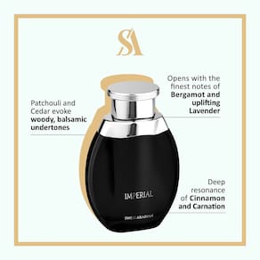 Swiss Arabian Imperial - Luxury Products From Dubai - Fragrância em spray EDP pessoal de longa duração e viciante - Aroma de assinatura sedutora - 100 ml - IMPERIAL: SEU NOVO ARMAZENO DE ASSINATURA. Abre com as melhores notas de bergamota e lavanda edificante. O coração pulsante da fragrância traz a ressonância profunda da canela e do cravo. Patchouli e cedro adicionam profundidade ao aroma e inspiram - Qualidade Eau de Parfum de longa duração. Essência de fragrância superior e duradoura. Perfeito para dar de presente ou para usar em uma variedade de situações. Formulado para projeção de aroma de longa duração e intensidade usável - Uma forma clássica com nossas fragrâncias exclusivas. Uma fórmula versátil e clássica de fragrância. Mais adequado para uso diário e ideal para combinar com outras fragrâncias. Ingredientes cuidadosamente trabalhados são adequados para pessoas com pele sensível - A MISTURA PERFEITA DE CULTURAS E PERFUMES. Com um legado enraizado em uma mistura de artesanato ocidental e oriental, a Swiss Arabian é uma marca fundada na dualidade que celebra orgulhosamente o espaço em que dois mundos aparentemente opostos se unem - Uma experiência aromática de todos os mares. Nascidas de começos preciosos e construídas em grande quantidade de conquistas, nossas criações requintadas levarão você a uma jornada aromática dos sentidos que culmina em um momento impecável que encanta para sempre