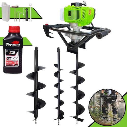 Perfurador De Solo Menegotti MPS52 Á Gasolina 2T 52CC 1,8HP Com Brocas 80x10cm, 80x15cm, 80x20cm + Óleo Toyama FG50 500ml 2T