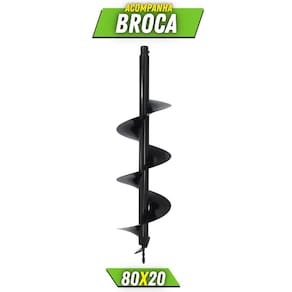 - Broca 80x20cm Com Pino Trava e Grampo - Tipo: Broca para perfurador de solo - Diâmetro da Broca: 20cm - Comprimento da Broca: 80cm - Acoplamento: o tamanho do furo pra encaixe do eixo da broca é de 2cm.