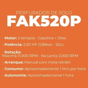 Potência Robusta: Motor 2 tempos 52cc 2,5hp para perfurações profundas e eficientes.