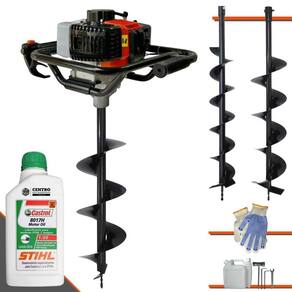 Perfurador De Solo Vant VPS52 Á Gasolina 2T 52cc 2HP Com Brocas 80x10cm + Broca 80x15cm + Broca 80x20cm + ÓLEO CASTROL STIHL 500ml