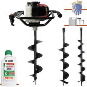 Perfurador De Solo Vant VPS52 Á Gasolina 2T 52cc 2HP Com Brocas 80x10cm + Broca 80x15cm + Broca 80x20cm + ÓLEO CASTROL STIHL 500ml