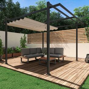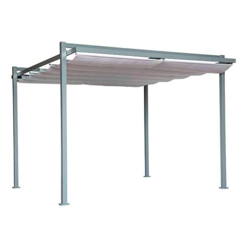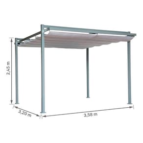 Com uma estrutura de alumínio, altura de 245 cm e dimensões generosas (320x358 cm), este pergolado oferece uma área de cobertura de 11,45 m². A cobertura retrátil em poliéster proporciona flexibilidade para ajustar conforme suas necessidades.