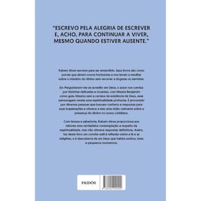 “Escrevo pela alegria de escrever e, acho, para continuar a viver, mesmo quando estiver ausente.” – Rubem Alves Rubem Alves escreve para ser entendido. Seus livros são como portas que abrem novos horizontes e nos levam a meditar sobre o mistério do divino sem recorrer a dogmas ou sermões. Em Perguntaram-me se acredito em Deus , o autor nos conduz por histórias delicadas e tocantes, com Mestre Benjamim como guia. Mesmo sem a certeza da existência de Deus, esse personagem revela uma espiritualidade profunda. É procurado por diversas pessoas que buscam conforto e respostas para suas inquietações e oferece a elas uma visão cativante sobre a presença do divino no nosso cotidiano. Com leveza e sabedoria, Rubem Alves proporciona aos leitores uma verdadeira contemplação a respeito da espiritualidade, mas não oferece respostas definitivas; assim, faz deste livro um convite sutil à reflexão sobre a fé e as religiões, e à descoberta de um Deus que habita sonhos, lutas e pequenos momentos. Marca: PAIDOS - PLANETA
