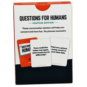 Material: papel Cor: vermelho Tamanho da embalagem: 6,5 × 2 × 9 cm Peso da embalagem: 0,08 kg Lista de embalagem: 1 x Conjunto de jogos de cartas para casais (50 cartas) Meaningful Conversation Starter Game — Questions for Humans é um jogo de cartas atencioso projetado para estimular conversas profundas e divertidas entre casais. Fortalecer relacionamentos — Cada cartão apresenta perguntas envolventes que ajudam os parceiros a se entenderem melhor e a criar conexões emocionais mais fortes. Perfeito para encontros noturnos — Ideal para noites românticas, aniversários ou noites casuais em casa, transformando momentos simples em conversas memoráveis. Jogabilidade simples e interativa — Regras fáceis permitem que os casais escolham uma carta e respondam perguntas juntos, tornando-a uma experiência descontraída e agradável. Baralho de cartas compacto e portátil — A caixa pequena e leve facilita o transporte para viagens, festas ou reuniões para diversão espontânea.
