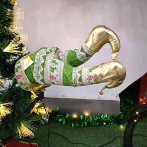 As pernas do duende pode ser perfeitamente combinada com outras decorações de Natal em casa, adicionando uma atmosfera festiva.
