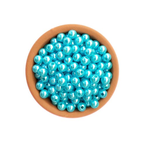Ficha Técnica: Marca: Nova Casa Armênia Tamanho da pérola: 6mm Tamanho do furo: 1mm Cor: Turquesa Formato: Esférico Material: Plástico Abs Peso: 500g Quantidade: média de 4.500 unidades