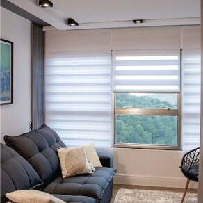 A persiana double vision une a sofisticação de uma cortina de tecido com toda a funcionalidade que uma persiana oferece.