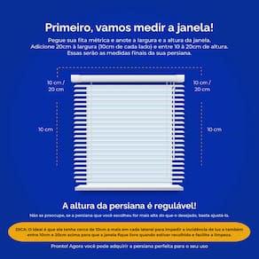 Exemplo: Janela: 120cm (L) x 120cm (A) = Persiana: 140cm (L) x 160cm (A).