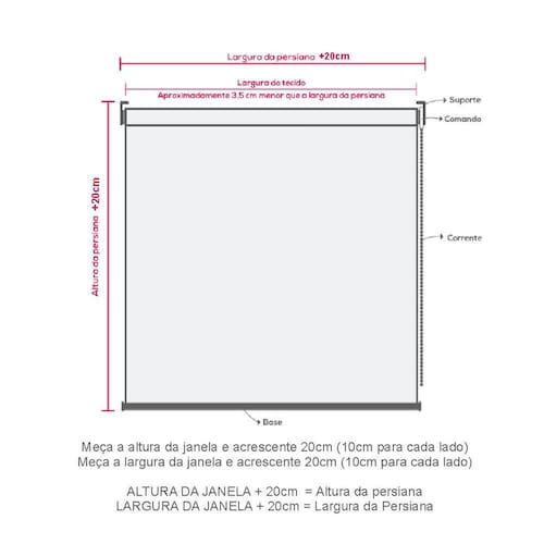 -Largura do Tecido: O tecido fica aproximadamente 3,5cm menor do que toda a estrutura (comando e suportes).