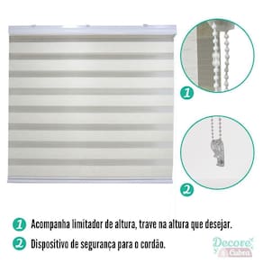 Persiana Zebra 160larg x até 220alt Linho Decore&Cubra As persianas Rolô Double Vision Translúcidas Decore&Cubra são versáteis, elegantes e muito funcionais. Para quem precisa de uma solução sofisticada de cobertura para janelas, sem abrir mão do controle de luminosidade, esta é a cortina ideal A persiana Rolo Double Vision Decore&Cubra possue tecido duplo que intercala camadas translúcidas e opacas, de modo a permitir que você defina a passagem ou bloqueio de luz no ambiente. Possue bandô curvo em alumínio branco, e tem a barra inferior dupla e fixa. Tecido de alta qualidade com corte a laser, proporcionam alta durabilidade. Acompanha limitador de altura, permitindo que a persiana seja travada na altura desejada.Por ser uma cortina moderna e sofisticada, destaca-se como uma grande aliada a projetos decorativos como um elemento chave. Informações do Produtos:Retenção de Claridade: MédiaLado do Comando: Direito Instalação: Teto ou Parede. Aponte seu celular para o QR Code no rótulo do produto e veja o vídeo de instalação.Material do Tecido: Poliéster Bandô: Sim Material Bandô: Alumínio CurvoAcompanha suportes de instalação, disposito de segurança do cordão, limitador de altura, buchas e parafusos para alvenariaAcompanha limitador para regulagem de alturaLimpeza: Pano seco ou espanador.