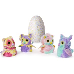 Hatchimals Mystery, Hatch 1 de 4 personagens misteriosos interativos fofos de Cloud Cove (os estilos podem variar), multicoloridos — NEW MYSTERY HATCH: Pela primeira vez, você não tem ideia de quem está lá dentro! Você pode criar um Bunwee, Pandor, Hedgyhen ou Elefly super fofo! (Ou talvez outra pessoa!) Use seu amor e carinho para criar um ovo salpicado e conhecer um novo amigo adorável! - PELE SUPER FOFA: Pela primeira vez, esses adoráveis Hatchimals têm pelos estampados superfofos. Eles até têm asas expansíveis! Descubra o mistério e aconchegue-se com seu novo amigo! - ELES APRENDEM SEU NOME: ensine aos seus Hatchimals Mystery como dizer seu nome! Quando souberem seu nome, eles o usarão no bate-papo diário. Você pode até mesmo gravar novos nomes de novo e de novo! - CRIE DE BEBÊ PARA CRIANÇA: Descubra o mistério de seus Hatchimals e, em seguida, crie-os de bebê para criança! Em cada estágio, você descobrirá músicas e jogos totalmente novos! Hatchimals Mystery Egg é para crianças com mais de 5 anos. Requer 2 pilhas AA (incluídas). - Inclui: 1 Hatchimal, guia de instruções, folha de dicas
