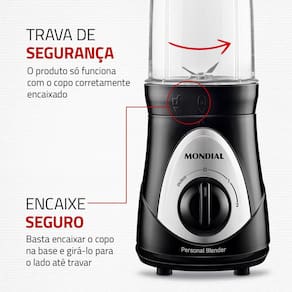 Leve suas bebidas para onde quiser! Com o Personal Blender você prepara sucos, vitaminas, shakes e coquetéis e pode carregar para academia, escritório ou qualquer outro lugar. Os 300W de potência proporcionam um excelente desempenho no preparo das bebidas. Saiba mais sobre o DG-01 da Mondial: 2 COPOS PARA LEVAR COMO SQUEEZE São 2 copos, de 750ml cada, super-resitentes para preparar shakes, sucos, vitaminas e coquetéis. Os copos se transformam em squeeze e podem ser levados para a academia, escritório ou para onde você for. Sua rotina fica muito mais prática! POTÊNCIA: 300W Excelente desempenho e eficiência no preparo das suas bebidas. LÂMINAS EM AÇO INOX São mais resistentes, duráveis e ideais para triturar frutas e até cubos de gelo. FÁCIL DE GUARDAR O blender tem design compacto e é desmontável, facilitando seu armazenamento. PÉS ANTIDERRAPANTES Mantém o produto estável e proporciona mais segurança durante o uso. VIDA SAUDÁVEL + PRATICIDADE Com a correria da rotina diária, costuma ser um desafio seguir uma alimentação saudável, né? Com o Blender Mondial, você pode preparar sucos naturais, vitaminas ou suplementos de forma rápida e prática, e carregar com você para onde for! Muito mais fácil para manter os bons hábitos alimentares!