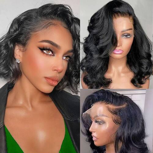 - Peruca frontal de renda 33 x 15 cm, tamanho da renda: nossa peruca Bob ondulada de corpo de 33 x 15 cm é de renda transparente HD suíça, não fina e invisível, pode derreter sua pele perfeitamente. Tamanho de renda grande pode fazer parte do meio, parte lateral, e pode fazer rabo de cavalo alto e coque, estilizado como você gosta.