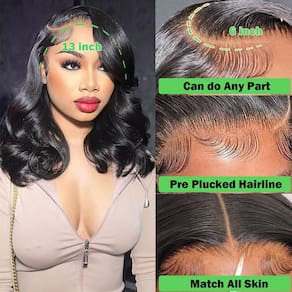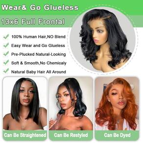 - ?Vantagem de cabelo humano em alta definição?Peruca de cabelo humano ondulado corporal com densidade de 200% completa e grossa, sem cheiro, macia, sem queda, sem emaranhados, fiel ao comprimento e peso. Renda suíça adequada para todas as peles, nós invisíveis de cabelo pequeno, pode ser tingido e descolorido, alisado e reestilizado, use e use peruca sem cola, espaço de divisão profundo de 33 x 15 cm, pode ser parte lateral, parte do meio. T, rabo de cavalo alto & Bun, estilizado como você gosta.