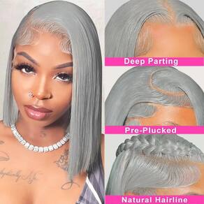- ?Vantagem das perucas frontais do bob?A peruca de cabelo humano curto tem textura lisa e sedosa, sem cheiro, sem camadas estranhas, o volume total torna toda a peruca grossa e uniforme, sem rastros ou trama aparecendo na superfície. Esta peruca de cabelo humano de renda frontal lhe dará um visual brilhante para a vida diária, você pode usá-la em qualquer ocasião, como dia de Natal, ano novo, feriado, festas temáticas, casamentos, encontros e cosplay.