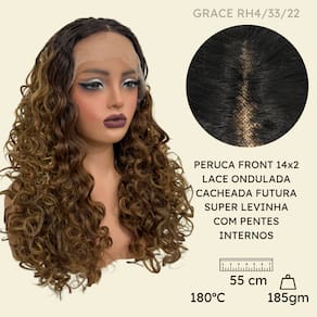 Peruca cacheada front lace 55cm ondulada RH4/33/22 loira omb - Peruca cacheada front lace loira ombré