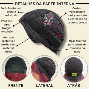 - Fibra orgânica premium; - 55cm de comprimento; - Aceita chapinha até 180ºC; - Peso 130g em média; - Possui três pentes internos para maior fixação; - Tamanho da peruca M (padrão) com alças internas ajustáveis; - Touca interna vazada (maior conforto, ventilação e flexibilidade). Marca: Não Informado