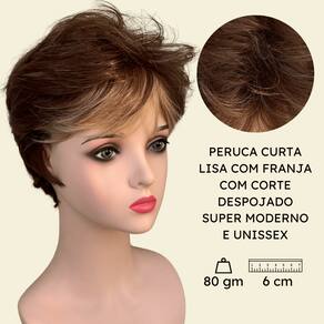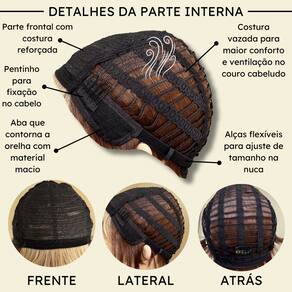 - Fibra orgânica premium; - 6cm de comprimento; - Front Lace com repartição esquerda; - Aceita chapinha até 170º; - Possui três pentes internos para maior fixação; - Peso do produto 80gm em média; - Tamanho da peruca M (padrão) com alças internas ajustáveis.