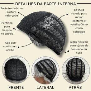 - Fibra orgânica premium; - 10cm de comprimento; - Aceita chapinha até 200ºC; - Possui três pentes internos para maior fixação; - Peso do produto 92gm em média; - Tamanho único com alças internas ajustáveis; - Raiz crespa no topo para um penteado mais firme jogado para trás. Informações importantes