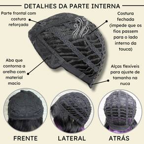 - Fibra orgânica premium; - 30cm de comprimento; - Aceita chapinha até 180ºC; - Peso 140g em média; - Possui três pentes internos para maior fixação; - Tamanho da peruca M (padrão) com alças internas ajustáveis;- Touca interna vazada (maior conforto, ventilação e flexibilidade). Marca: Não Informado
