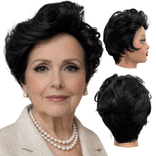Peruca curta preta orgânica premium pixie elegante wig 2