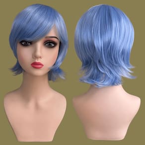 Peruca curta repicada lisa media cosplay personagem anime - Cor: Azul claro Trunks Konan